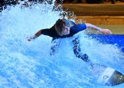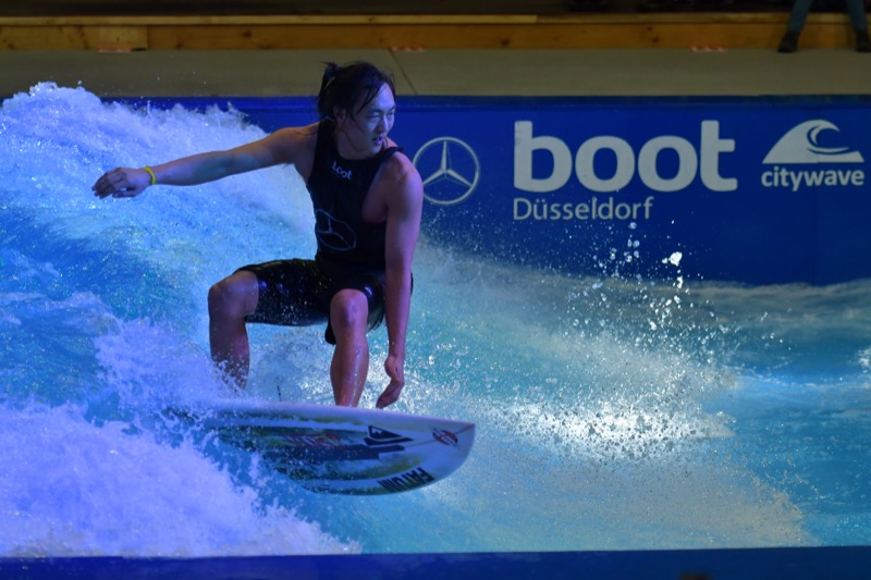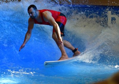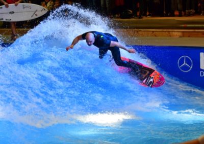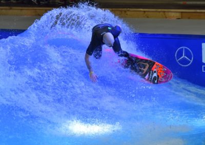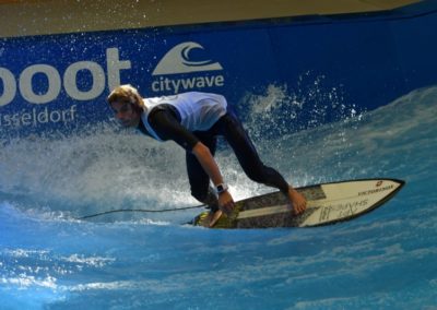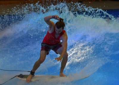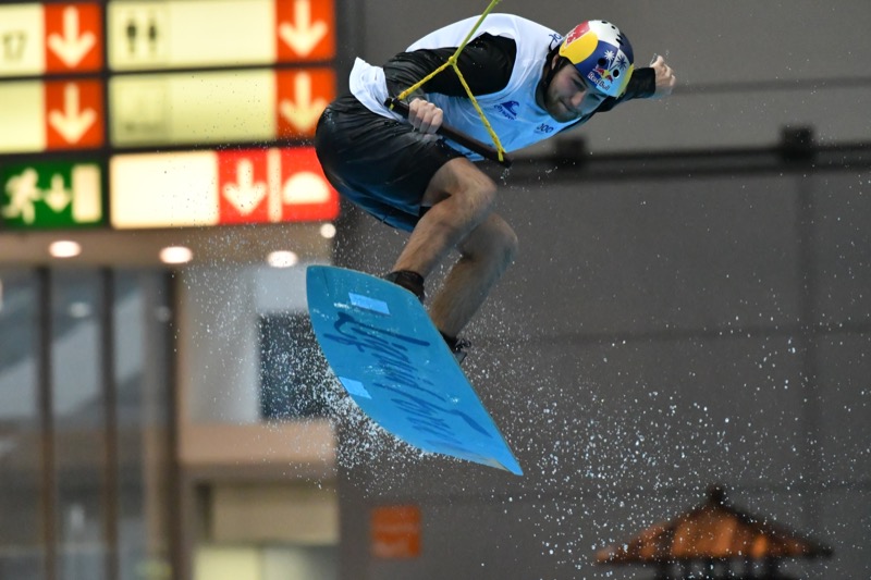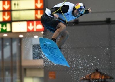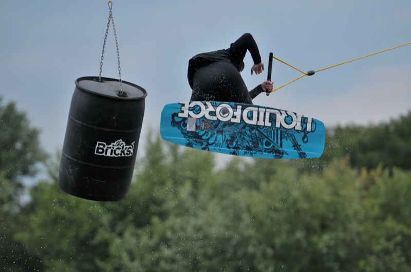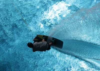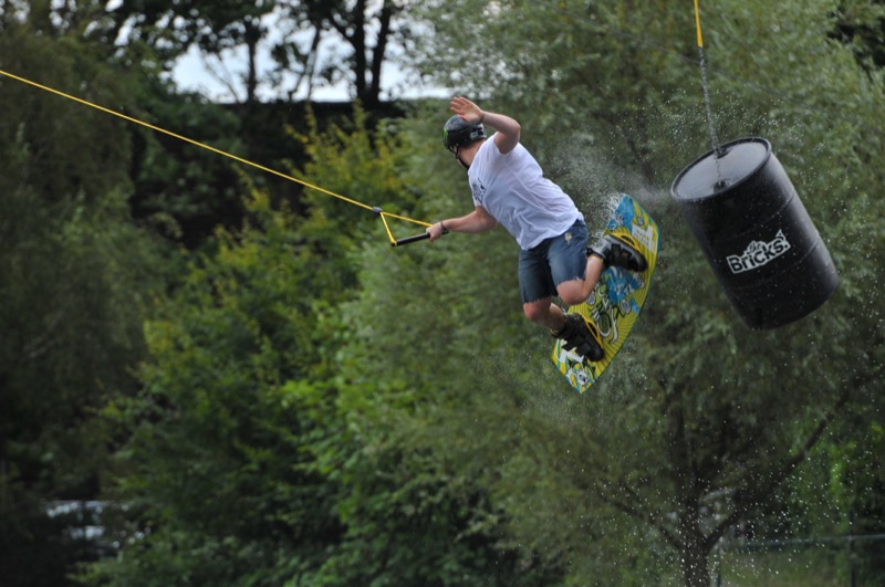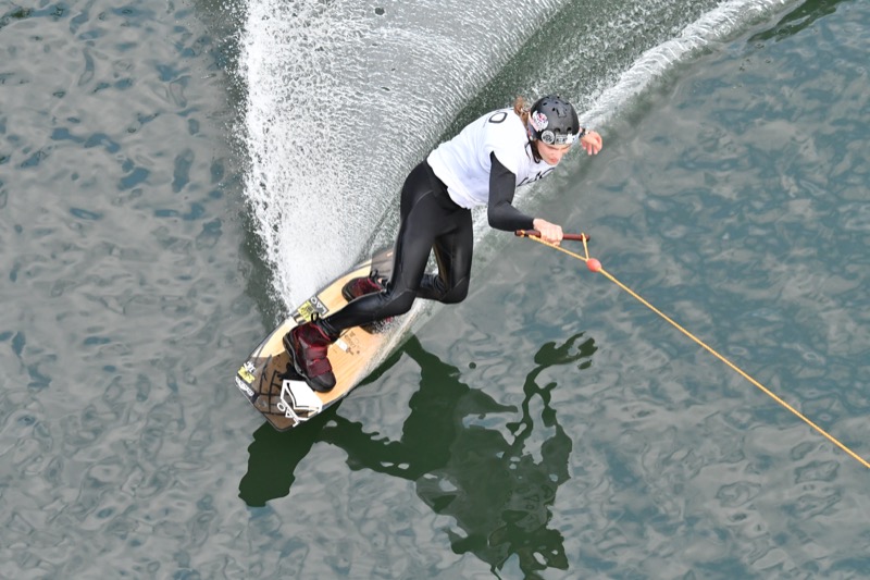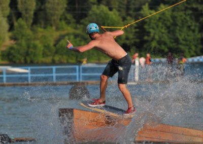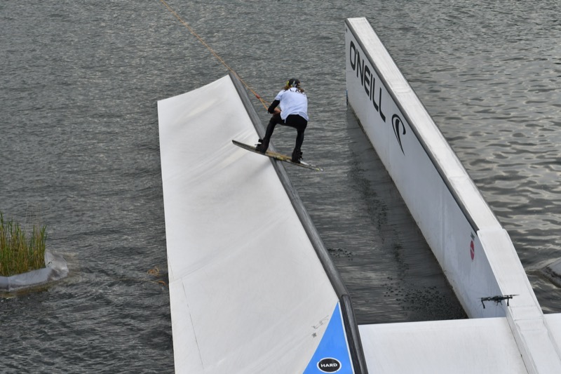 "Wakeboard (= Wasserskifahren mit Hindernissen/Obstacles) und Wakeskate (ohne Bindung)"Wassersportfotos